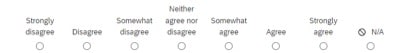 Instructions: Please rate the following statements on a scale from “Strongly disagree” to “Strongly agree.” If a statement does not apply, select “N/A” (see Figure).